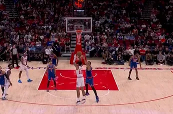 虎扑04月01日讯 NBA常规赛,火箭对阵尼克斯的比赛正在进行中。